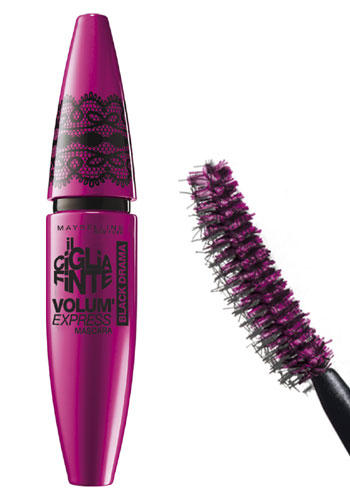 Il Ciglia Finte Black Drama è il mascara con fibre proposto da Maybelline New York. Pack glamour purple con un inserto decorativo di pizzo nero sul tappo, scovolino a cucchiaio pronto ad avvolgere le ciglia da un angolo all’altro dell’occhio con una finitura sensualmente glossy. Il prezzo si aggira intorno ai 12,50 €.