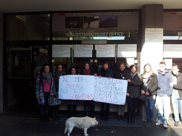Il 25 gennaio è il primo giorno di chiusura per i Bookshop degli Scavi di Pompei e Ercolano. Un altro pezzo di città che crolla nel silenzio generale. A determinare la drastica soluzione, una vertenza tra la Soprintendenza speciale di Napoli e Pompei e la società Mondadori Electa. Quest’ultima, infatti, si è aggiudicata l’appalto per il servizio libreria che procedeva in regime di proroga. Necessario, a questo punto, il passaggio di cantiere nella nuova impresa dei quindici lavoratori della Coopculture che da ben dodici anni lavorano nel settore. Si tratta di personale esperto e professionale che garantisce un servizio qualificato in due dei siti più prestigiosi e rinomati nel mondo. La società Mondadori si sarebbe dichiarata disponibile ad assorbire l’organico, ponendo come termine ultimo il 24 gennaio per regolamentare il rapporto concessorio. Una delegazione di lavoratori, allarmati per tale situazione, si è recata dalla soprintendente Teresa Elena Cinquantaquattro. Il vertice della SANP, tuttavia, avrebbe declinato la propria competenza in merito alla controversia di cui si starebbe occupando l’avvocatura di stato. Se non si trova una soluzione temporanea, quindi, le due librerie saranno chiuse a tempo indeterminato e i dipendenti temono le conseguenze di una tale scellerata situazione. Lo scenario è quello di ridurre l’orario di lavoro e impiegare il personale a turno negli altri servizi appannaggio della società, ovvero didattica e bagagliaio. Ma anche questo espediente, sostengono i lavoratori, non potrà durare a lungo, in quanto l’organico sarebbe sovradimensionato. Le prospettive sono cassa integrazione o licenziamenti. Il fattore tempo, dunque, è essenziale. Il paradosso, tuttavia, è che il lavoro c’è. Le librerie sono in attivo grazie al flusso costante di milioni di turisti l’anno. Si tratta, quindi, di tagliare posti di lavoro a fronte di un’azienda solida e un’attività redditizia. In tempi di crisi un vero schiaffo alla miseria. Senza contare il disagio per i turisti che non potranno più contare su un servizio qualificato e sulle edizioni di pregio presenti nella libreria. Unica alternativa saranno le bancarelle esterne, con tanto di danno di immagine per la soprintendenza. È come se il bookshop del Louvre chiudesse e i turisti dovessero arrangiarsi con delle librerie ambulanti. È davvero impensabile, senza contare che le bancarelle fuori al Louvre non ci sono. È invece vergognoso che tutto questo accada in uno dei siti più prestigiosi al mondo che non solo è ridotto ad avere una sola libreria ma chiude anche questa senza dare alcuna risposta ai lavoratori. Il tutto avendo a disposizione la megalomane struttura di vetro a piazza anfiteatro che sarebbe costata più di due milioni di euro e doveva fungere da Bookshop. Per ora è stata usata solo dalla Protezione Civile per una mostra sui terremoti, dall’utilità invero ignota. Oggi non solo quella struttura non viene utilizzata ma si chiude persino quel piccolo eppure redditizio Bookshop di Porta Marina con uno spreco di risorse anche per la SANP che dal sevizio percepisce le royalties. Di tutto questo nessuno parla e nessuno paga. Tranne, ovviamente, i lavoratori che potrebbero ritrovarsi a casa. Da oggi inizia il presidio davanti alla biglietteria di Porta Marina. A loro fianco troneggiano installazioni in metallo molto simili a quelle della gestione commissariale, preludio del tempo dei crolli infiniti. Gli immani manifesti di ferro, di cui si ignora il costo, pubblicizzano il fantomatico Grande Progetto Pompei, con tanto di piantina e spiegazione. Oggi quei 105 milioni di euro suonano come una beffa a fronte di una gestione che non riesce a garantire neanche 15 posti di lavoro. Né si riesce a crearne nuovi, come sarebbe e dovrebbe essere possibile se un’amministrazione appena più accorta e oculata riuscisse a uscire fuori da pantani e sprechi di anni. A meno che il disegno non sia proprio quello di svendere e distruggere una città sempre più decadente. L’ultima immagine che mi rimane del presidio è un cane randagio che rosicchia un osso fino a spolparlo e ridurlo a pezzettini lasciati a terra, ormai inutili. Ecco questo è il senso di desolazione che trasmettono gli scavi. Insieme a tanta vergogna, un sentimento che se non si ha non si può provare.