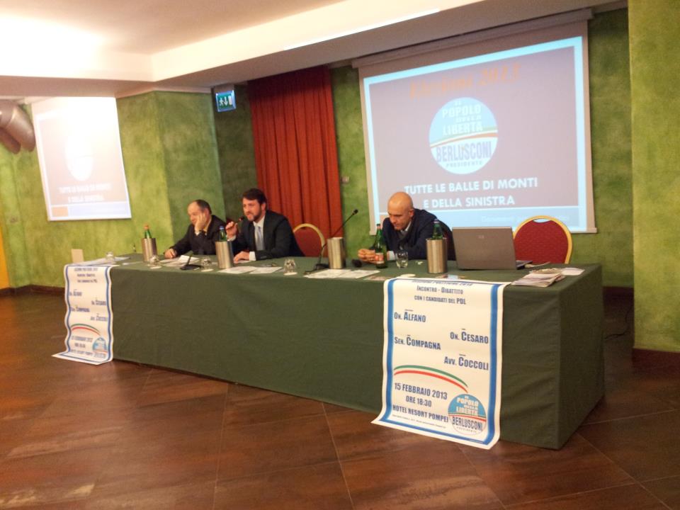 Venerdì 15 febbraio alle ore 18.30 presso l’hotel “Pompei Resort” si è tenuta la conferenza di presentazione di tre dei candidati al Senato e alla Camera per la lista campana del Pdl. Luigi Compagna, senatore, in corsa per la sua quarta legislatura. L’onorevole Gioacchino Alfano, con all’attivo tre legislature, candidato alla Camera dei Deputati al numero 4 per il Popolo della Libertà, nel collegio Campania 1. L’avvocato Gaetano Coccoli, pompeiano, giovane candidato alla Camera. Due capitani di lungo corso della politica italiana Compagna e Alfano, che hanno tenuto a battesimo Coccoli nella presentazione della sua candidatura all’opinione pubblica pompeiana. Il giovane impegno politico che si unisce all’esperienza veterana: questo, in sintesi, il messaggio di fondo dell’incontro di ieri. Tanti i punti affrontati dai tre candidati nei loro discorsi di presentazione: il clima politico nazionale, la costituzione e alcune riforme di esse, la campagna elettorale e i suoi toni e non è mancato neppure un chiaro ed argomentato riferimento alla situazione della vita politica pompeiana, scossa da alcuni recentissimi e preoccupanti accadimenti. Ad aprire la conferenza di presentazione è stato il senatore Luigi Compagna, Professore Ordinario di Storia delle Dottrine Politiche alla Luiss di Roma. Autore di saggi e volumi sul costituzionalismo liberale e sulla storia del Parlamento, Compagna è già stato senatore nella XI, XIV e XVI legislatura. Prima di rivolgere il suo discorso agli astanti il senatore ha gentilmente concesso alcune dichiarazioni, rispondendo ad una domanda.