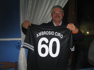 San Giuseppe Vesuviano. Si è svolta in data 20.02.2013 una splendida festa in onore di Ciro Ambrosio, ex calciatore, per i suoi 60 anni un sangiuseppese doc.(foto) che ha fatto un po’ la storia di San Giuseppe Vesuviano nel campo dello sport. e precisamente il calcio, lo sport più amato da tutti. Una persona davvero schietta, umile, sempre disponibile . Attualmente, oltre a svolgere l’attività di imprenditore in Via Astalonga, ricopre la carica di Presidente della Polisportiva San Giuseppe , squadra militante in prima categoria con un buon piazzamento . Sono stati davvero tanti a festeggiare il suo compleanno, a cominciare dal presidentissimo Peppe Massa intervenuto nell’occasione, che in passato, negli anni d’oro , nel 90 ha difatti, creato una squadra davvero forte , la Sangiuseppese calcio, che per poco sfiorò la serie C1 ai tempi di Franco Villa. Per tanti anni, Massa ha dato lustro al suo paese con attaccamento esemplare, per creare sempre una squadra che potesse dare grandi soddisfazioni, fino all’anno 2005, quando cedette il titolo di serie D. a Mario Moxedano ex presidente del Calcio Napoli. Da lì poi, a San Giuseppe Vesuviano ha continuato la Polisportiva a rappresentare da sola il calcio a San Giuseppe Vesuviano. Un amarcord, davvero significativo, tanti ex giocatori presenti non solo, ma anche quelli che sono tutt’ora in in attività, nonchè alcuni ex allenatori della Polisportiva , quali Prisco F.sco, Annunziata Pasquale, il popolare Juary e il nuovo mister, il navigato V.De Simone, i f.lli Annunziata che seguono le giovanili, tutti uniti per festeggiare degnamente Ciro Ambrosio, il quale emozionatissimo a dato un arrivederci a tutti tra 5 anni..Molto commovente è stata la dedica che l’attuale team manager, Ambrosio Antonio , ha scritto in suo onore, tra l’altro ha consegnato una targa ricordo nientemeno che dalla Juventus f.c. A seguire il buon Tonino gli ha consegnato una maglietta con retro scritto”Ambrosio Ciro 60 Anni, e a questo punto non si sono sprecati i tanti applausi per questo personaggio schivo da ogni forma pubblicitaria, sempre disponibile e sempre generoso, insomma un pezzo di storia vivente.