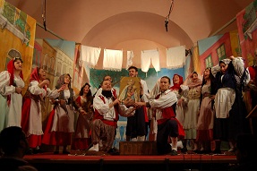 “Folk, farina e festa!” è l’ultimissima fatica teatrale e musicale del gruppo folk ‘O Pazziariello di Torre Annunziata. L’efficace scenografia, con i colori brillanti e vivaci del golfo, dei vicoli e delle piazze ha immediatamente catapultato il pubblico nella Napoli più tradizionale quella, per intenderci, della farina e delle feste.