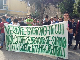 notizia. Palloncini levati al cielo come piccioni viaggiatori con un messaggio di speranza da consegnare. “Manifesti” con i teenager-pensieri scritti dagli studenti di Medie e Superiori, performance teatrale in chiusura con gli allievi dell’Accademia dello Spettacolo di Gaetano Stella.
