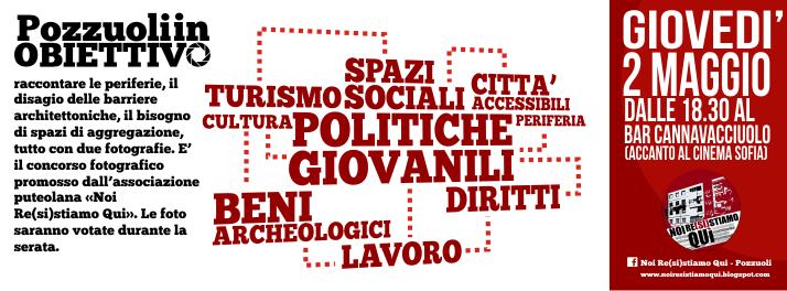 Un concorso fotografico che mette al centro dell’obiettivo le politiche giovanili, legando questo tema a quello delle barriere architettoniche, della mancanza di spazi sociali e delle periferie abbandonate di Pozzuoli. È questa l’iniziativa lanciata dall’associazione Noi Re(si)stiamo Qui – Pozzuoli.