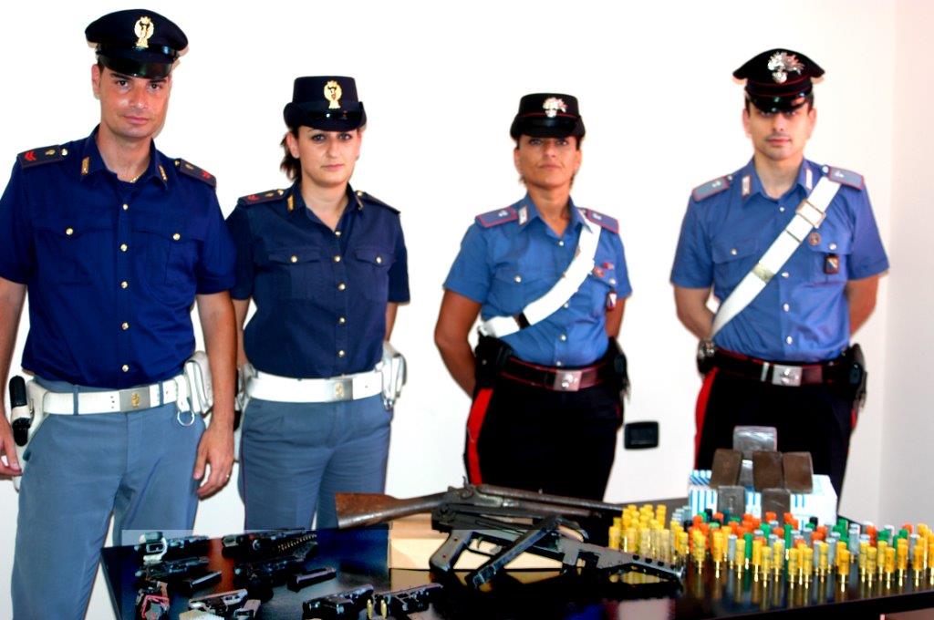 Una pistola mitragliatrice con caricatore, una pistola calibro 7.65, senza matricola, con caricatore e 3 cartucce calibro 7,65; una pistola senza matricola, di calibro da accertare, con caricatore; una pistola calibro 7,65 con caricatore; una pistola calibro 7.65 con due caricatori; una pistola calibro 6,35 con caricatore; 3 caricatori; 24 cartucce calibro 22.