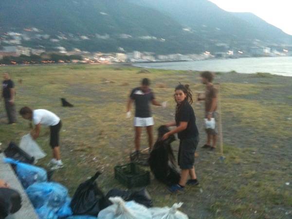 invadono tutto. L’arenile diventa il cimitero delle bottiglie. I ragazzi hanno creato questa iniziativa, chiamata “Partimm’ ‘a terra ‘a rena”, per coinvolgere tutti nell’interesse comune, passando delle ore utili e costruttive nel senso civico e di aggregazione. La loro non vuole essere la semplice “pulita” fine a se stessa, bensì una “riappropriazione”, una rivendicazione a vivere questi tesori, questi posti, simbolo di una città abbandonati al degrado. Purtroppo sono consapevoli che questo non basterà senza l’intervento da parte degli enti preposti a cui chiedono l’istallazione degli appositi contenitori adibiti alla raccolta differenziata nei punti di maggiore affluenza. Quindi propongono un nuovo incontro, questa volta molto meno faticoso, per martedì 16 luglio: “partimm ‘a terr ‘a rena” piazzando nuovi posacenere, allestendo delle sedute in riva al mare, ricreando la possibilità di fruire della NOSTRA spiaggia. Ogni proposta lecita e creativa è benvenuta.