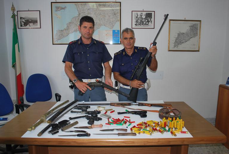 Quest’ultima perquisizione ha però confermato i sospetti. All’interno della baracca i poliziotti hanno infatti rinvenuto: un fucile da caccia calibro 20 con le canne segate e due cartucce caricate, tre pistole originariamente ad aria compressa, ma successivamente modificate per alloggiare munizioni calibro 22, un fucile ad aria compressa, un fucile monocanna regolarmente denunciato ma non in Via Pozzo, numerose cartucce di vario calibro, alcuni pugnali e coltelli a scatto e due sciabole.