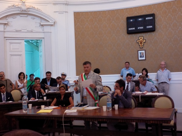 progress). Quest’ultimo quando ha sentito pronunciare il suo nome accostato alla parola “incompatibilità” dalla bocca del segretario Lissa alias “Il Burocrate” a dir poco spiazzato: “si tratta di un residuo di indennità di consigliere comunale, provvederò ad eliminare nei prossimi giorni questo problema che mi ha sorpreso. Potevo essere anche avvisato prima”. Invece, per quanto riguarda il consigliere Esposito (a sinistra in foto), la contestazione dell’incompatibilità è arrivata solo nella giornata di ieri ed anche lei in aula si è detta “dispiaciuta perchè questa comunicazione è arrivata da poco tempo, 15 giorni è un tempo limitato”. Ma a precedere gli interventi dei due consiglieri comunali è stato il primo cittadino stabiese Nicola Cuomo che è sembrato alquanto seccato dalla puntiglio del segretario Lissa a tal punto da alzarsi ed andare a prendere il testo dei codici per leggere di persona il decreto legge n. 39 dell’aprile 2013. Una norma che introduce nuove disposizioni nell’ambito delle leggi anti-corruzione approvate anche dalla Civit (Commissione indipendente valutazione, trasparenza ed integrità delle pubbliche amministrazioni). “Secondo me non vi è incompatibilità nè per gli assessori nè per i consiglieri comunali, si tratta di una legge vergognosa e spero che il Parlamento dia indicazioni precise al più presto, così come l’interpretazione della Civit che rischia di mettere a rischio la vita gestionale di tanti enti”, ha tuonato Cuomo. Nonostante la presa di posizione del primo cittadino il segretario Lissa non ha accennato a fare alcun passo indietro anche se alla fine il consigliere Gina Avitabile (Pd), che ha diretto i lavori in qualità di consigliere “anziano”, ha messo ai voto il primo ed il secondo punto all’ordine del giorno: 11 “sì” e 8 astenuti, così passa la convalida degli eletti ma le posizioni di Esposito e Sanges resteranno “congelate” fino al prossimo consiglio comunale. Superata la questione incompatibilità (più di due ore e mezza di discussione in aula) il consigliere Francesco Iovino