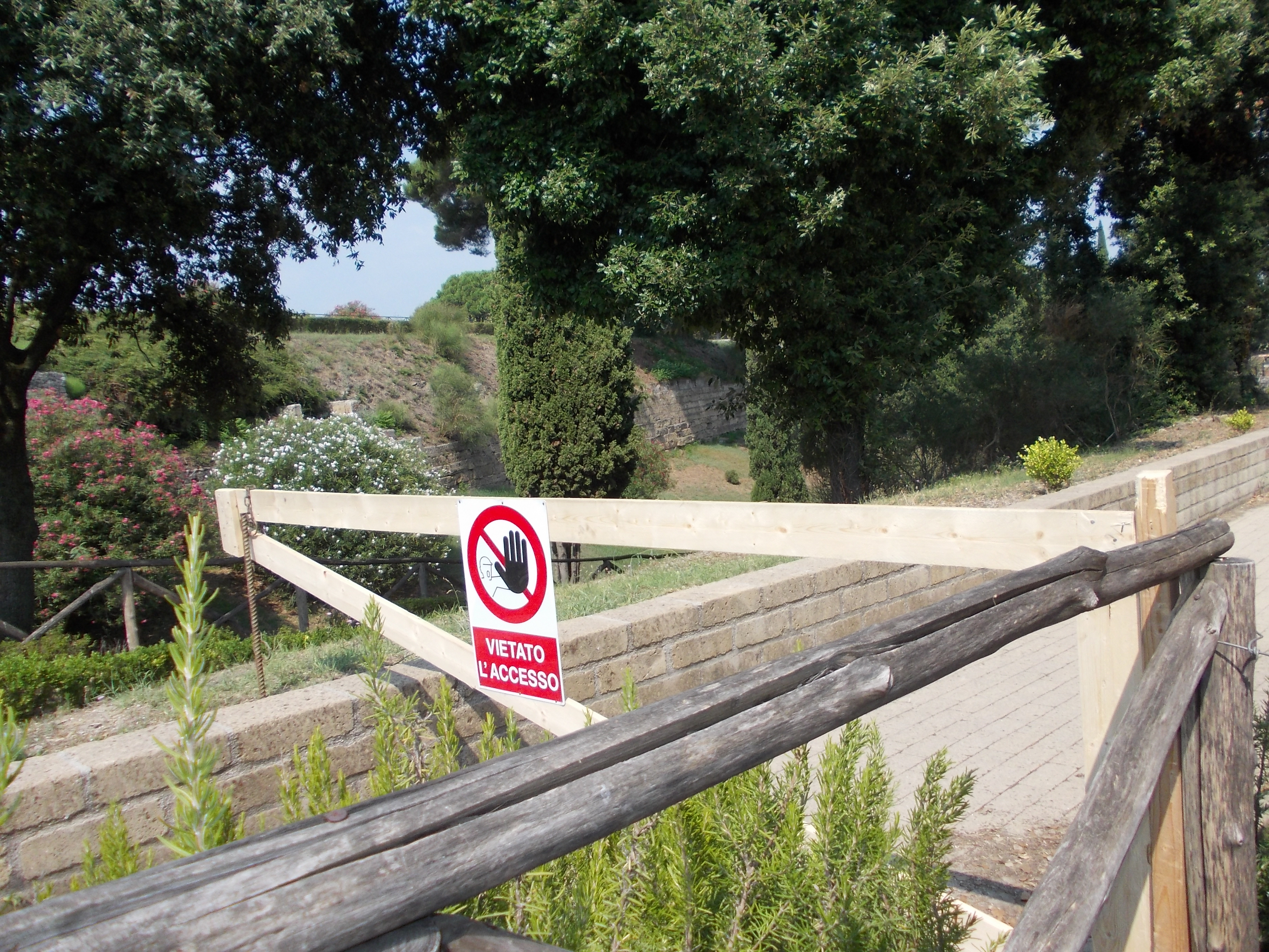 Un nuovo cartello è apparso stamane nel sito archeologico pompeiano. “Vietato l’accesso”, questa l’iscrizione che campeggia su una staccionata in legno posta a sbarramento di uno dei percorsi più praticati dai turisti. Dalle prime ore del mattino due uomini hanno lavorato di lena per portare a termine l’operazione. E’ il risultato non è tardato ad arrivare. La parte di percorso che fiancheggia via Plinio è zona off-limits (vedi foto). Una scelta di sicuro dettata da esigenze precise ma lo stupore dei turisti è tangibile. Specie di quelli che, arrivati nel punto esatto dello sbarramento, sono costretti a tornare indietro.