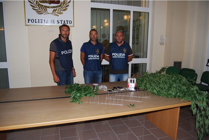 Nel corso della perquisizione, gli agenti hanno anche rinvenuto numerosi semi della pianta, due bilancini di precisione, alcuni involucri per il confezionamento della sostanza, un rotolo di carta stagnola e una dose già pronta.