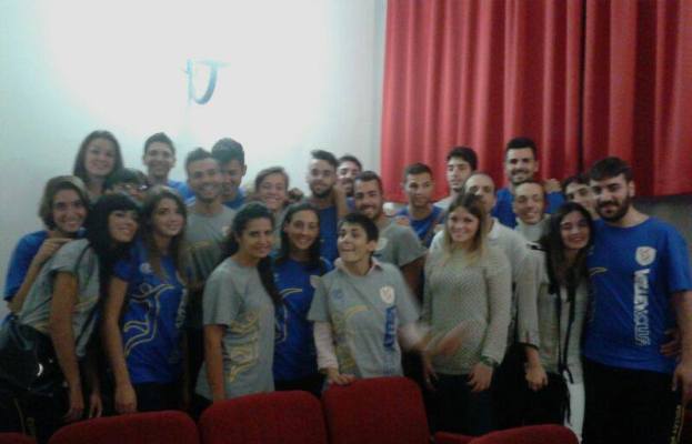 Le squadre accompagnate dai due tecnici Antonio Vallefuoco per la compagine femminile e Gianpaolo Caserta per quella maschile, insieme allo staff (Giovangiuseppe Vannelli e Alfonso Crisci), si presentano al pubblico, tra cui il vice-sindaco Mauriello, intervenuti ad ascoltare il concerto dell’artista napoletana.