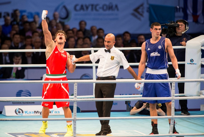 Clemente Russo ha vinto l’oro ai Mondiali Aiba in corso in Kazakhstan, nella categoria dei pesi massimi. Netto il punteggio della finalissima vinta contro il russo Tischenko, battuto 3-0 (29-28; 29-28; 29-28) e mai in grado di impensierire “Tatanka” nella corsa ad un titolo di campione del mondo che l’azzurro aveva già conquistato nel 2007 a Chicago.