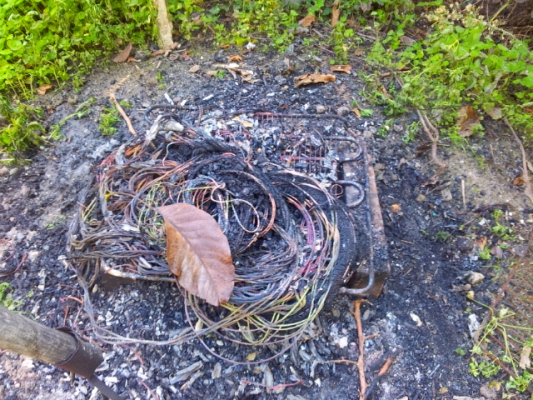 All’interno vi era un 64enne di Brusciano che alla richiesta degli agenti, li ha condotti presso il punto in cui la colonna di fumo aveva origine. Sul posto i poliziotti hanno quindi scoperto una grossa griglia artigianale, sulla quale il 64enne aveva posto delle matasse di cavi elettrici in modo da fonderne il rivestimento in plastica e poter successivamente recuperare il rame da vendere.