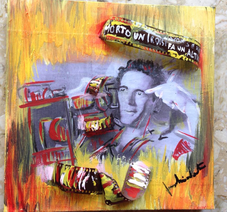Omaggiare Troisi, indimenticabile protagonista del film “Il Postino”. Ricordare il poliderico artista, simbolo di una napoletanità che non tramonta. Questo lo scopo della mostra collettiva che potrà essere visitata tutti i giorni dalle 10.30 alle 13.00 e dalle 17.00 alle 19.00. Undici sono gli artisti partecipanti: Giovanni Ariano, Luigi Bruno, Rosella Cosulich, LouisemarieClaire Cherì , Antonio De Chiara, Luigi Di Donna, Davide Di Pinto, Stelvio Gambardella, Carlo Improta, Mena Pagnani, Silvia Rea. Fra i nomi compare anche quello di Louise Marieclaire Cherì, nome d’arte della pompeiana Chiara Nastro. Dopo il successo della partecipazione alla mostra collettiva “I colori del Mondo al Mav”, l’artista torna con una nuova ed originalissima opera dedicata a Massimo Troisi. Il marchio di fabbrica della pittrice si ripete. L’intuitiva commistione di pittura e parti materiche s’evidenzia in una stampa su tela con intervento di colore e applicazione di rollino fotografico in rilievo.