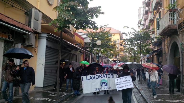 Questa mattina tra le strade di Castellammare è andata in scena la “marcia” della rabbia: protagonisti i lavoratori di Terme di Stabia, gli studenti stabiesi, i sindacati ed il mondo delle associazioni. I termali hanno sfilato in corteo percorrendo le principali strade della città per manifestare tutto il loro dissenso nei confronti della scelta messa in campo dal sindaco Nicola Cuomo: liquidazione la società partecipata comunale per poi passare alla cessione dei rami d’azienda. Soluzione questa più volte respinta da termali e sindacati che invece chiedono la messa in sicurezza dei conti dell’azienda per poi procedere alla privatizzazione con la priorità del mantenimento dei livelli occupazionali attuali.