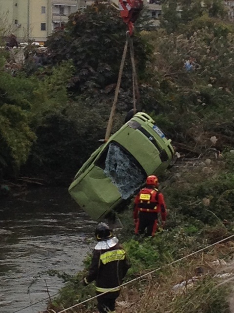 Dopo complicate manovre tecniche, intorno alle ore 16.45, è affiorato dalle acque melmose del fiume il tetto dell’auto.