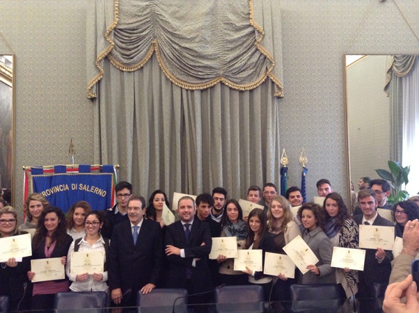 Si è svolta stamani a Palazzo Sant’Agostino, la cerimonia di consegne delle borse di studio “Premiamo il Merito”, concorso promosso dalla Provincia di Salerno. Gli 80 studenti più meritevoli dell’anno scolastico 2012/2013, iscritti agli Istituti secondari di secondo grado del territorio hanno ricevuto dal presidente della Provincia di Salerno, Antonio Iannone, un attestato ed una borsa di studio di 625,00 euro. Alla cerimonia ha preso parte il dirigente dell’Ufficio scolastico Provinciale di Salerno, Renato Pagliata.