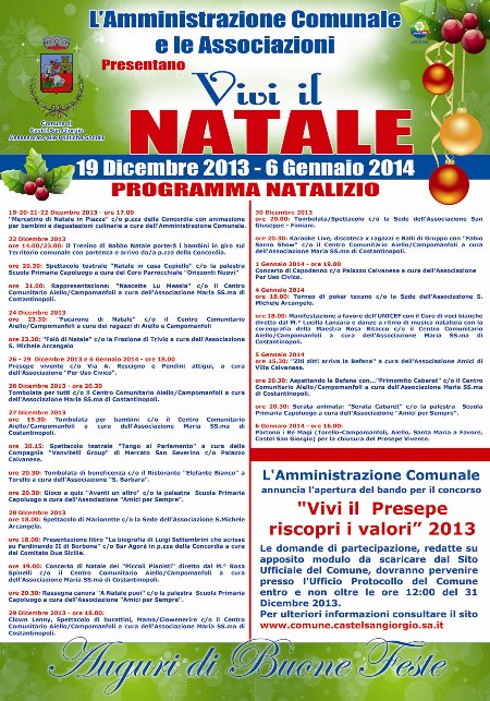 Inoltre, si ricorda che fino al 31 dicembre 2013 sarà possibile presentare domanda di partecipazione al concorso “Vivi il presepe, riscopri i valori” (in allegato lo schema di domanda e il regolamento).