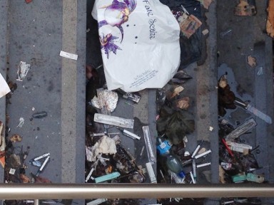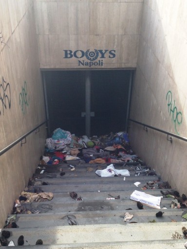 Un tappeto di siringhe ricopre i gradini dei sottopassi assieme a panni dismessi, spazzatura e borse svuotate forse provento di scippi.