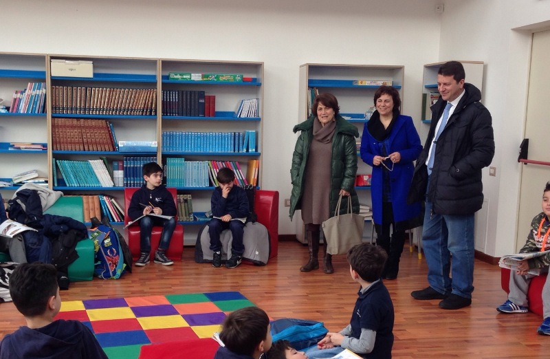 Il sub-commissario, guidato dalla Dirigente, ha poi visitato il plesso ed in particolare si è soffermato nella biblioteca, una sala dai colori vivaci, in cui una classe era alle prese con la lettura.