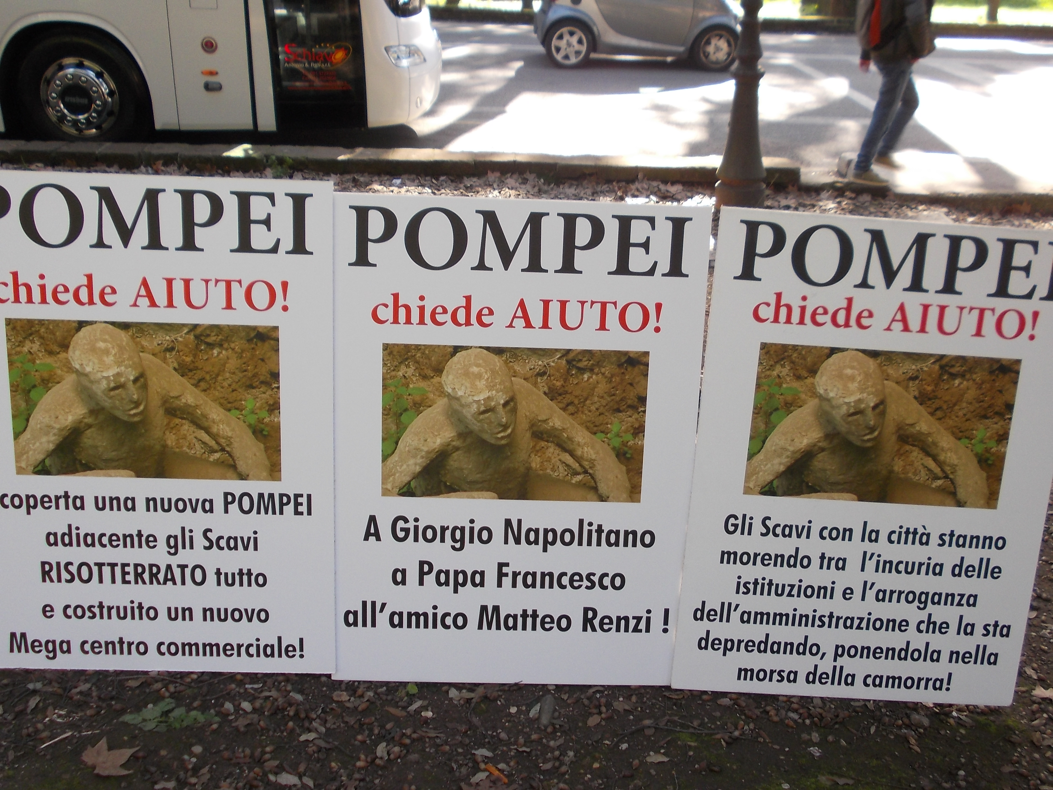 Il messaggio portato a Roma è preciso: Pompei sta morendo per l’incuria del Governo e dell’amministrazione locale. Cittadini pompeiani in trasferta a Roma per chiedere che Pompei non venga abbandonata dalle istituzioni.