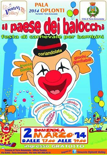 Nella splendida cornice del “Paese dei Balocchi” del PalaOplonti di Torre Annunziata si è svolta, domenica 2/3/14 la festa di Carnevale organizzata dal Vesuvio Volley Club.