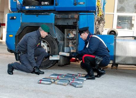 La motrice del Tir è stata fermata per un controllo perché viaggiava a velocità eccessiva. Al suo interno, nel vano portascale dell’abitacolo, sono stati scoperti 25 panetti di cocaina purissima.