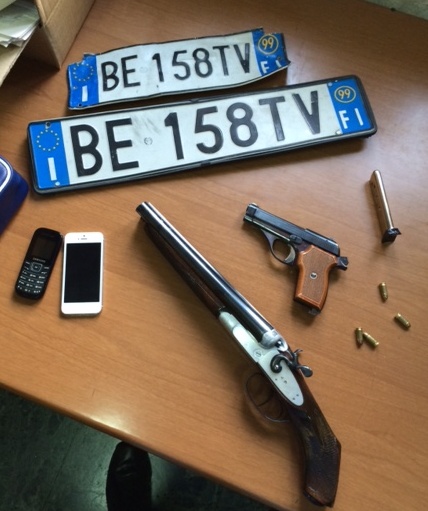 All’interno del furgone venivano rinvenuti e sequestrati: due telefoni cellulari, due berretti usati come passamontagna, alcuni guanti da lavoro, la cassaforte asportata, un fucile a doppia canna mozzata calibro 12, marca BERNARDELLI, oltre alla pistola di cui era in possesso l’AMABILE, completa di caricatore e con il colpo camerato; nr. 2 pali di ferro; materiale utilizzato per compiere l’azione delittuosa.