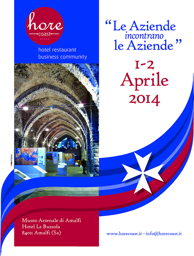 Una “due giorni” interamente dedicata alle imprese ed alle opportunità derivanti dai rapporti interaziendali. È “Ho. Re. Coast” – Hotel Restaurant Business Community, l’evento in programmamartedì 1 e mercoledì 2 aprile 2014 ad Amalfi (Sa). Ad ospitarlo saranno due splendide location: il Museo della Bussola e del Ducato marinaro (noto come Museo Arsenale di Amalfi), sito in Largo Cesareo Console 3, e l’Hotel La Bussola, sito in Lungomare dei Cavalieri 16.