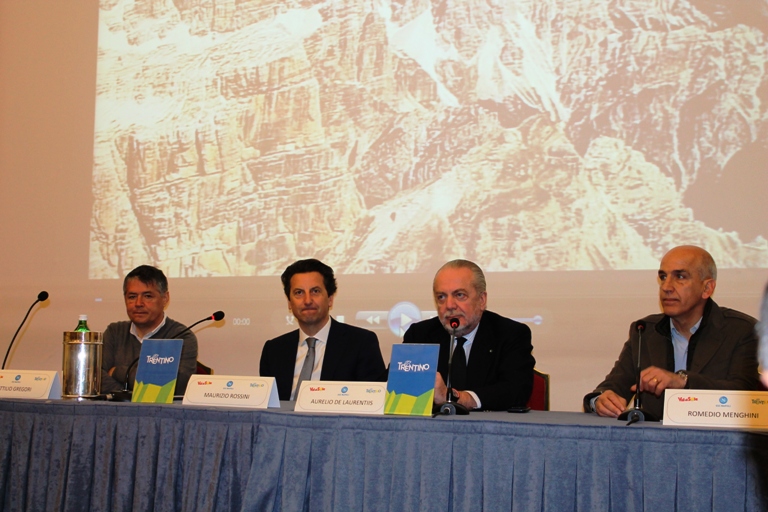 Conferenza Stampa di presentazione del ritiro in Trentino (Dimaro) all’Hotel Vesuvio di Napoli. Alla conferenza partecipano il Presidente del Napoli , Aurelio De Laurentiis, il Sindaco di Dimaro Romedio Menghini, e il Direttore Marketing del Trentino Maurizio Rossini e il Direttore Apt Val di Sole Attilio Gregori. Ritiro che si terrà in quel di Dimaro dal 17-18 al 31 Luglio.