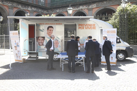 Anche per questo motivo Prosud ha attivato nel maggio 2013 una Unità Urologica Mobile, che tocca le principali piazze dei capoluoghi campani per sensibilizzare il pubblico maschile a una costante abitudine al controllo. In sole 19 tappe da maggio 2013 ad oggi sono state effettuate piu’ di 600 visite.