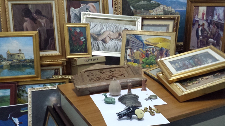 Inoltre, nella stessa tabaccheria, vi erano dei quadri che, in parte erano stipati nel deposito, altri posti su alcune mensole e, in un cassetto vi erano alcuni frammenti di vasellame, un orologio da taschino, un oggetto in metallo porta candela e una parte di un bassorilievo.
