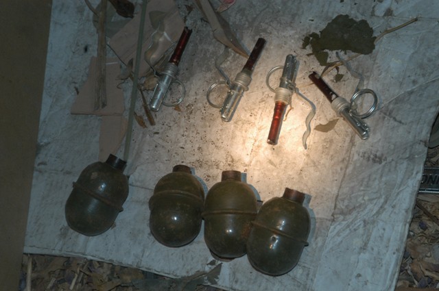 In particolare gli agenti hanno scoperto quattro bombe a mano con altrettante leve di accensione contenute in un borsello.