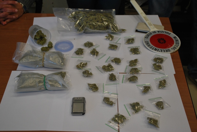 Inoltre, i poliziotti hanno sequestrato due bilancini di precisione e diverse centinaia di buste in plastica vuote utili al confezionamento delle singole dosi.