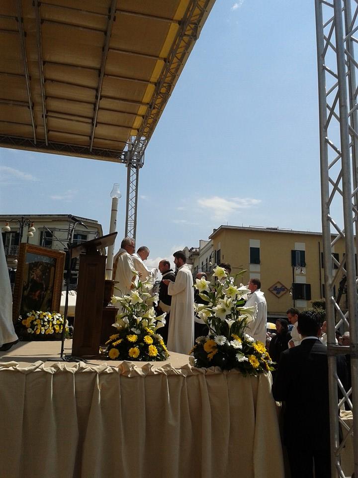 Come di consueto la messa preparatoria alla recita della Suppilca è stata officiata sul sagrato antistante la basilica. Iniziata alle ore 10.30, essa si è aperta con i saluti di S.E. mons. Tommaso Caputo, arcivescovo prelato di Pompei e delegato pontificio. Il vescovo ha rivolto un deferente saluto alle autorità civili e militari, ai sacerdoti, ai religiosi e alle religiose e alle centinaia di fedeli giunti in città.