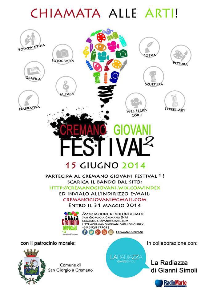 San Giorgio a Cremano, 22 maggio 2014 – Si chiuderanno alle 12.00 del prossimo 31 maggio le iscrizioni per partecipare alla seconda edizione del “Cremano Giovani Festival”. La kermesse avrà luogo a Villa Bruno domenica 15 giugno. L’evento, nato con l’obiettivo di valorizzare i talenti artistici del territorio campano, è organizzato dall’Associazione di volontariato “Cremano Giovani” con il patrocinio del Comune di San Giorgio a Cremano e la collaborazione di “La Radiazza”, trasmissione condotta da Gianni Simioli su Radio Marte e partner ufficiale.