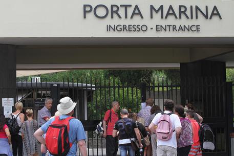 Un migliaio di turisti si sono sparpagliati tra piazza Esedra e Porta Marina, le due biglietterie degli Scavi di Pompei, in attesa dell’apertura,