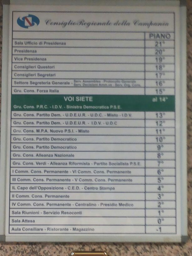 “Confido, tuttavia, nel nuovo corso avviato dal Presidente Foglia, da poco alla guida del Consiglio regionale della Campania, affinché, nonostante la legislatura volga al termina, disponga quantomeno la sostituzione delle tabelle e dia finalmente dignità alla sede del Consiglio regionale”.