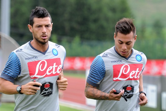 Ottavo giorno di allenamento per il Napoli a Dimaro. Gli azzurri hanno svolto una prima parte di lavoro tecnico tattico sul campo grande. Poi la squadra si è divisa in due gruppi per effettuare schemi attacco contro difesa. Successivamente allenamento con il pallone senza porta e con i paletti a delimitare il perimetro di gioco. Chiusura con la comitiva divisa in quattro gruppi e per ognuno dieci minuti di corsa. Nel pomeriggio seconda seduta di allenamento allo stadio Carciato. Novità aggregati al gruppo i nazionali di ritorno dalle vacanze dopo il Mondiale brasiliano e il cileno Edu Vargas.