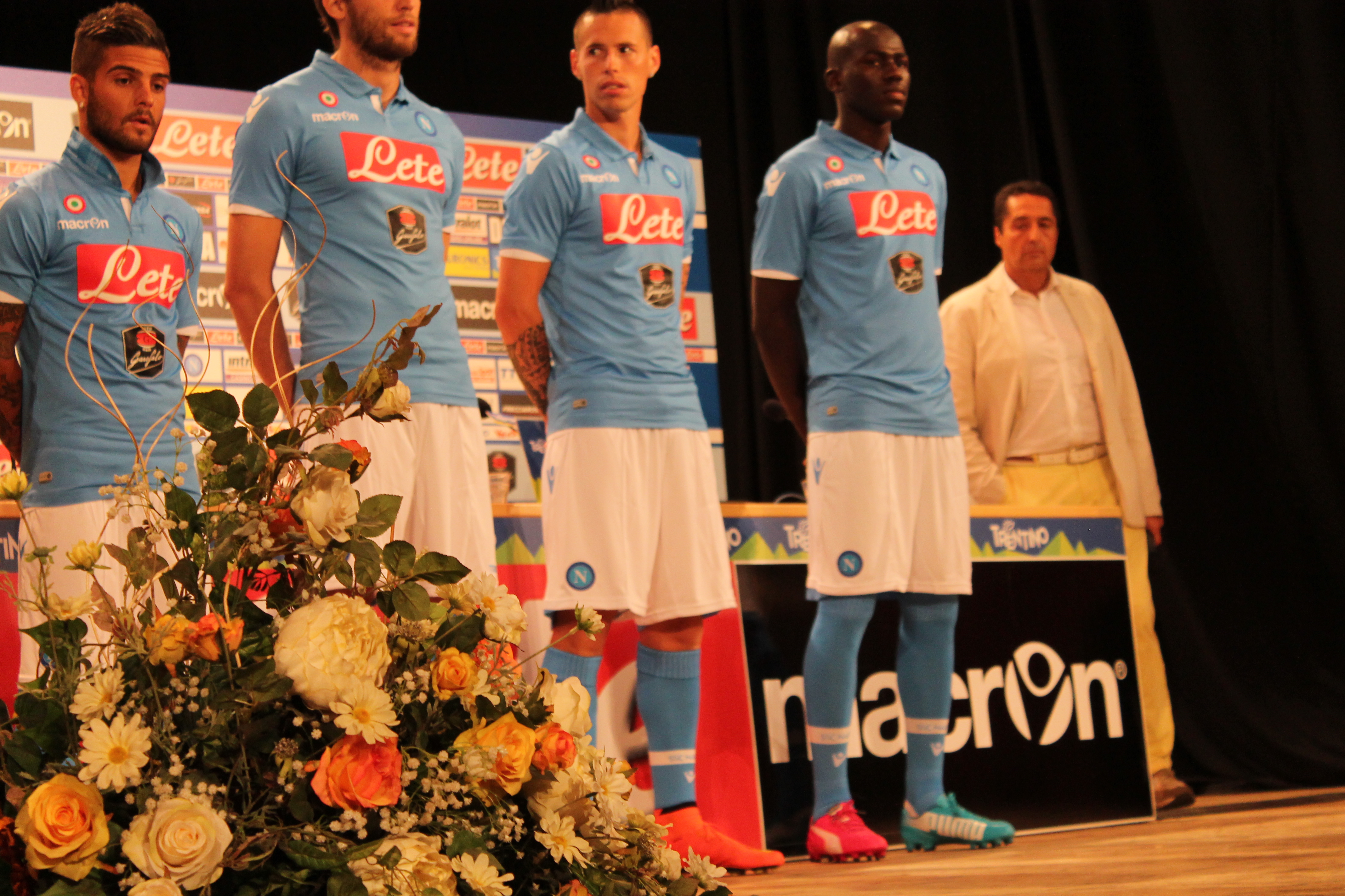 Formisano Head of Operation della SSC Napoli spiega i dettagli della nuova maglia per la prossima stagione: “Come potrete vedere dal colletto di Insigne è stato fatto un colletto tipo polo principe di galles, abbiamo fatto una maglia aderente con traspirazione laterale, su tutti i capi abbiamo messo un logo anti-contraffazione, siamo ritornati al colore azzurro-bianco-azzurro tradizionale, anche i numeri saranno stilisticamente innovativi. Particolare attenzione ai nostri sponsor i loghi di Pasta Garofalo e Acqua Lete, e lo sponsor stesso delle maglie ovvero la Macron e con loro siamo in grado di sviluppare idee e nuove innovazioni sulle maglie”.