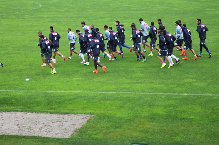 A causa del cattivo tempo la squadra svolge lavoro in palestra, poi tutti sul campo, Finito il riscaldamento si passa agli esercizi col pallone, dopo il quale comincia una partitella a campo ridotto e partitella in sette contro sette. Dopo un breve giro di campo si svolgono i primi esercizi di riscaldamento agli ordini del preparatore atletico. Da segnalare un bel gol di Michu che fulmina Colombo con un diagonale. Anche Pandev e Vargas a segno. La partita si conclude 6-2 per i verdi, nel finale I grigi accorciano le distanze con gol di Dzemaili, Jorginho e ancora Michu, da incorniciare la conclusione dello svizzero. 6-5 il risultato. Poi gli azzurri impegnati nella partitella si dirigono verso la palestra….