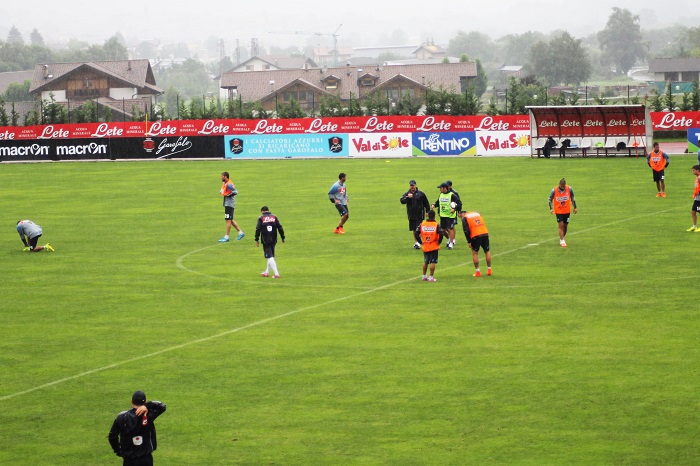 L’azzurro sugli spalti dello Stadio Carciato, illumina il cielo grigio della Val di Sole in quel di Dimaro. Seduta pomeridiana di allenamento per gli azzurri.
