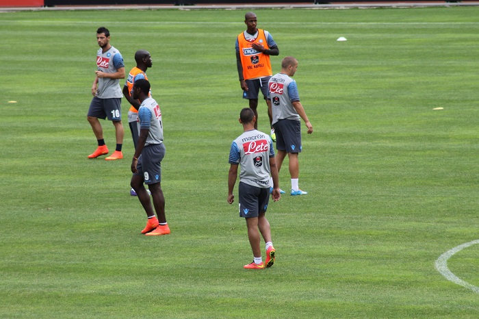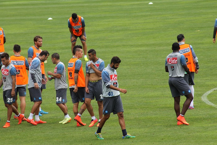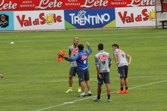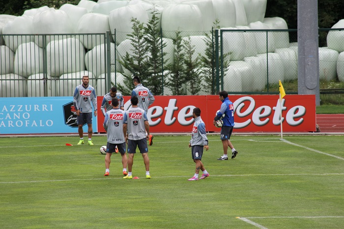 Allenamento mattutino per il Napoli, gli azzurri di Benitez si preparano allo Stadio Carciato di Dimaro, in vista dei vari impegni per la prossima stagione. Simpatica iniziativa dei tifosi prima dell’inizio dell’allenamento quando i tifosi cantano la canzoncina di buon compleanno per Marek Hamsik, e un coro di auguri per Pandev, doppio compleanno in casa azzurra.