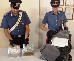 I militari dell’arma l’hanno fermato per controlli sottoponendolo a perquisizione, trovandolo in possesso di ben 2,2 chilogrammi di cocaina in pasta (quantitativo che avrebbe permesso di realizzare svariate migliaia di dosi) che portava nascosti in un doppio fondo ricavato nello zaino.