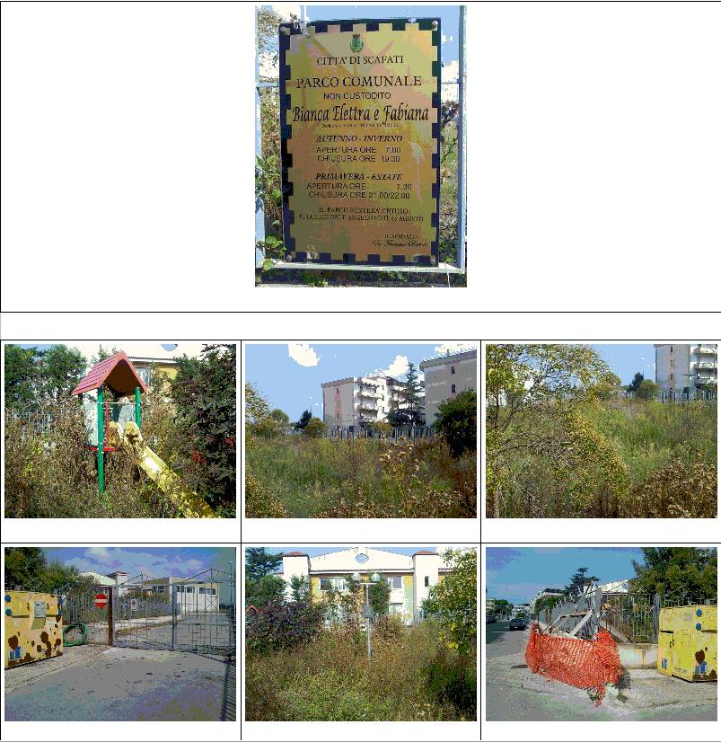 Infatti oggi il parco giochi ‘Bianca Elettra e Fabiana’ è divenuto una vera e propria giungla dove a dominare incontrastate sono le erbacce alte e le sterpaglie hanno coperto totalmente tutte le istallazioni e le giostrine presenti.