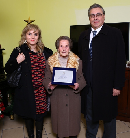 Alla festa di compleanno è intervenuto anche il sindaco Giuseppe Balzano, accompagnato dal segretario generale Carla Tanzillo, che ha fatto omaggio alla nonnina di una targa ricordo e un fascio di fiori.