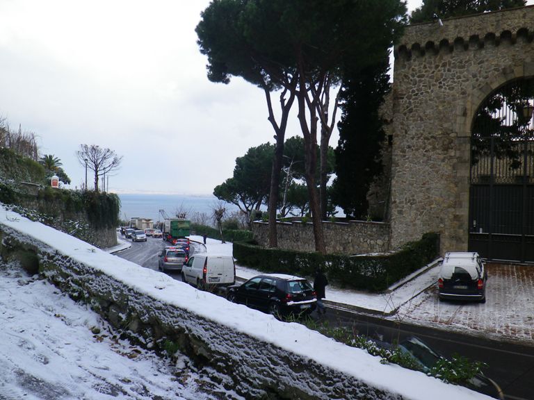 Questa mattina difficoltà per numerosi automobilisti a percorrere la Statale Sorrentina 145. Nel tratto all’altezza del Castello medievale di Castellammare di Stabia, alle falde del Monte Faito, si sono formate estese lastre di ghiaccio che impedivano la normale circolazione.