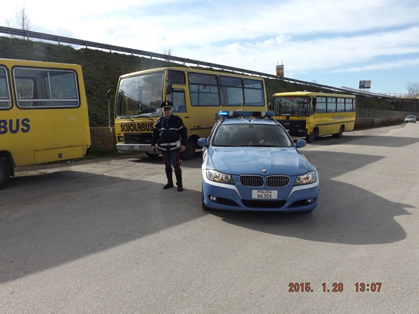 Nella mattinata odierna, una pattuglia del Distaccamento Polizia Stradale di Nola, coordinata dall’Ispettore Superiore Sabato Arvonio, nel corso della consueta attività di vigilanza stradale finalizzata alla sicurezza e alla libertà di circolazione, nonché a quella di prevenzione e repressione di ogni forma di delinquenza, procedeva al controllo di nr. 3 autobus adibiti al trasporto alunni di una scuola elementare. Si poteva così riscontrare che durante il tragitto verso la scuola, in caso di pioggia, vi erano delle infiltrazioni d’acqua all’interno degli autobus che inumidivano l’intero abitacolo, inoltre gli stessi si presentavano fatiscenti ed in pessime condizioni d’uso, sprovvisti dei fondamentali strumenti di sicurezza.