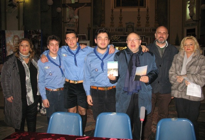 A Torre Annunziata, l’Associazione oplontina ”Libera” ha presentato, nella chiesa dello Spirito Santo, il libro “Peppino Diana – il martire di Terra di Lavoro” del Vescovo Raffaele Nogaro. Relatori : Carmine Alboretti vaticanista, Valerio Taglione,testimone di vita di Don Diana, Lorenzo Tommaselli, docente di materie letterarie nei licei, coordinati da Michele del Gaudio, anima dell’Associazione torrese (nella foto con gli scout presenti, con le Sig.re Staiano e Pastore, ed il relatore Taglione).