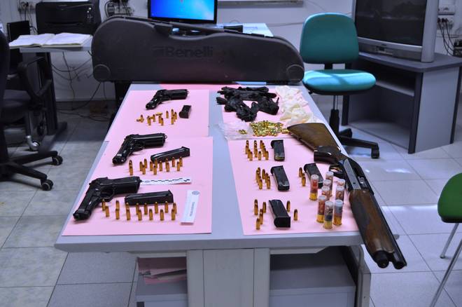 In particolare gli agenti hanno scoperto tre pistole semiautomatiche ciascuna completa di 15 cartucce; in una custodia rigida è stato scoperto un fucile a canne mozze e 9 cartucce; 4 caricatori; un sacchetto contenente altre 50 cartucce per pistola e 10 guanti in lattice.