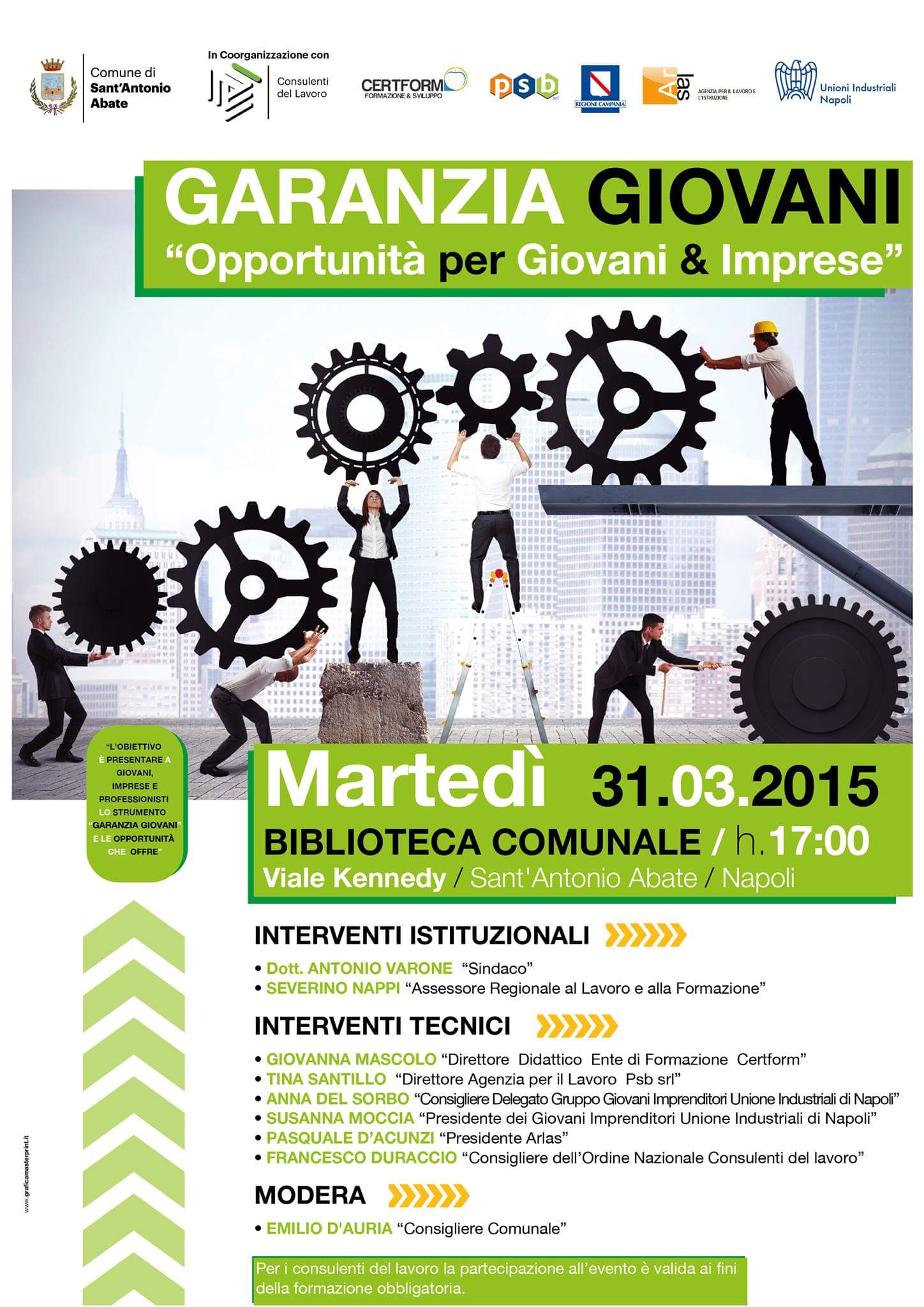 Parte a Sant’Antonio Abate “Garanzia Giovani”, progetto europeo rivolto ai giovani disoccupati di età compresa tra i 15 e i 29 anni che non frequentano la scuola e che attraverso tirocini presso aziende o corsi di formazione potranno vedersi agevolato il percorso di inserimento nel mondo del lavoro.